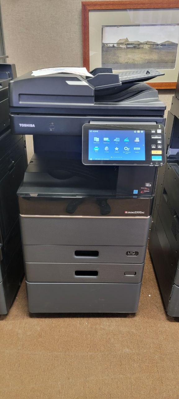 Refurbished Toshiba e‑STUDIO 2505AC color laser MFP with only 82,350 prints. Ideal for small to mid-sized offices needing reliable color copy/print/scan.